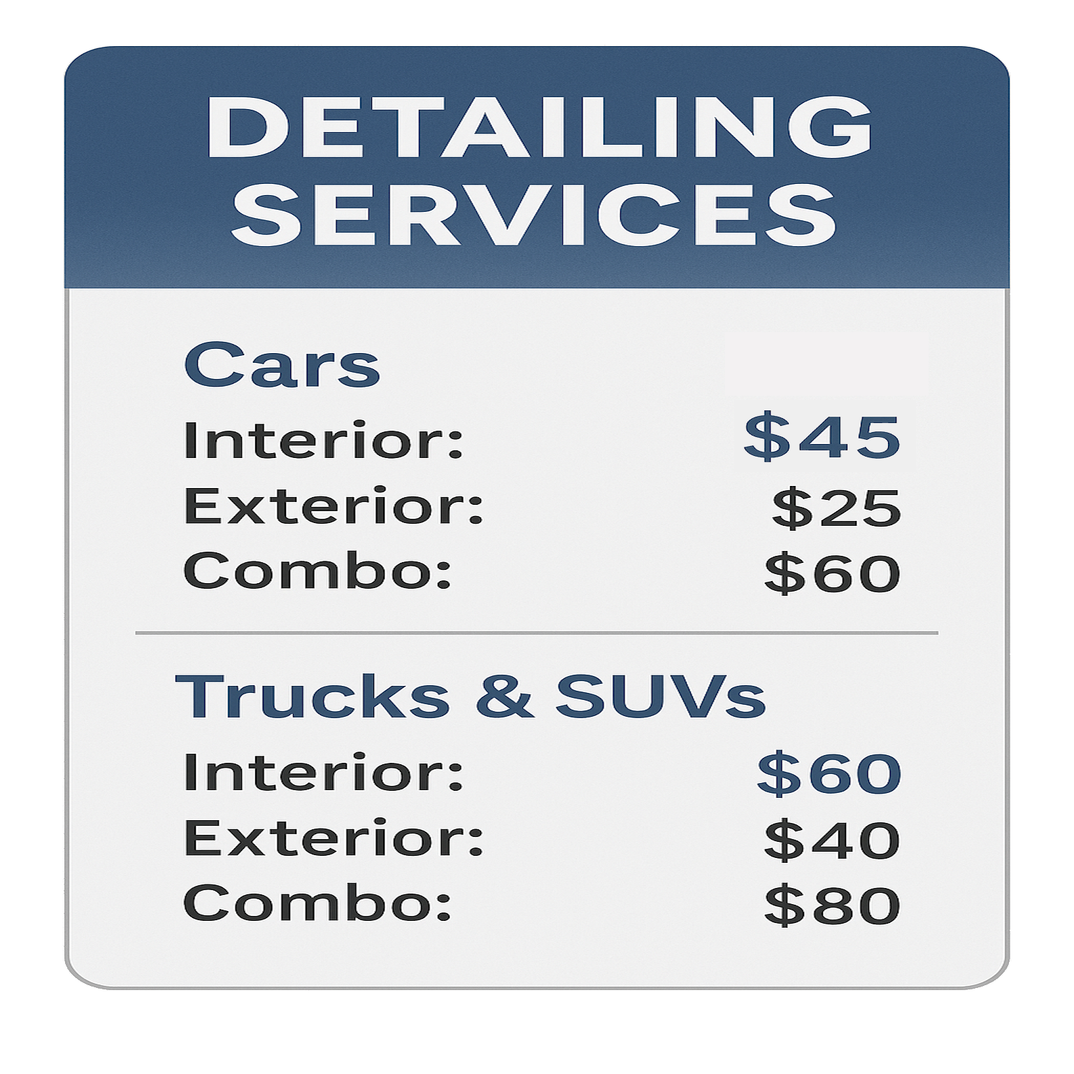 We treat your car like it just swiped right for a first date. Whether it’s covered in crumbs, dog hair, or mysterious sticky stuff—we’ve seen worse.